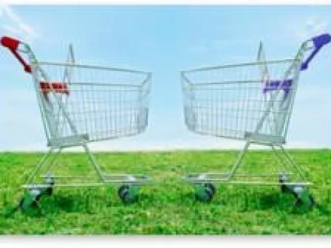This demonstrates the concept of bundled choices in political decision making. The carts represent candidates and the products are the political positions of those candidates. The candidates might support policies that a particular citizen favors, but that individual won’t agree with everything a candidate stands for. In private decisions, one chooses only the items he wants, since the choices are not bundled, but in political decisions, you don’t have this option. If you support a candidate, you realize that you are accepting a bundled choice that includes some policies that you do not favor.