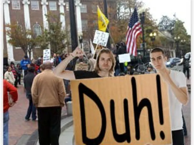 Buchanan’s quote is relevant today because some Harvard students are upset that not all of their economics professors are yet a bevy of Occupy Wall Street–following whores. Citing Professor Greg Mankiw’s classical analysis of the minimum wage as one of their grievances, a group of students recently walked out of Mankiw’s introductory micro course to join an Occupy protest in Boston. (Apparently spoiled Harvard kids who can’t stand even listening to an opposing view are the 99 percent.)