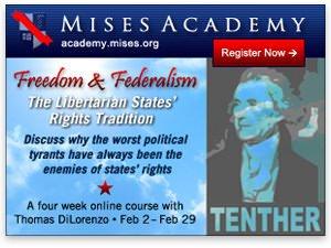 [Thomas DiLorenzo will be teaching Freedom and Federalism: The Libertarian States' Rights Tradition, a 4-week online course for the Mises Academy, February 2 – February 29.]