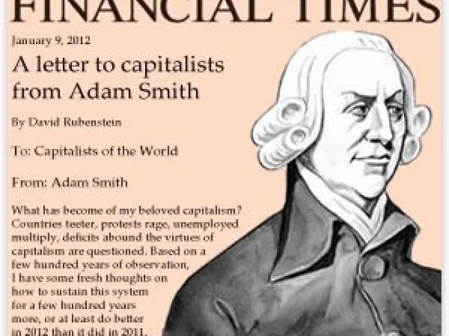This definition of capitalism is not the one held by those in the media commentariat however. In a recent open letter in the Financial Times addressed to “Capitalists of the World” from “Adam Smith,” David Rubenstein, managing director and cofounder of the Carlyle Group, plays the hypothetical role of the Wealth of Nations author in warning about the excesses of the system he so famously praised over two centuries ago. While Rubenstein rightly identifies that capitalism “has succeeded in creating more opportunities for more people than anyone — including me — ever imagined,” his attributing of a system defined by uninhibited market transactions to what currently exists around the world is flatly mistaken.