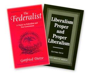 The Federalist was extremely well received when it was first published. Fairfield, in a review appearing in the Journal of Politics, praised Dietze for his lucidity and praised the book for its "symmetry, precision, and profundity" (1961:152). Later in 1961 Scalan reviewed Dietze's book for the Review of Politics and, in addition to praising the book for its scholarly merits, added that "his conclusions here, confessedly "undemocratic," "unpopular," and even "pessimistic," should be read by everyone interested in the future of constitutional democracy in the United States" (1961:431). Forty years after its publication, and after seven successful printings, Dietze's work is still widely read, discussed, and cited.