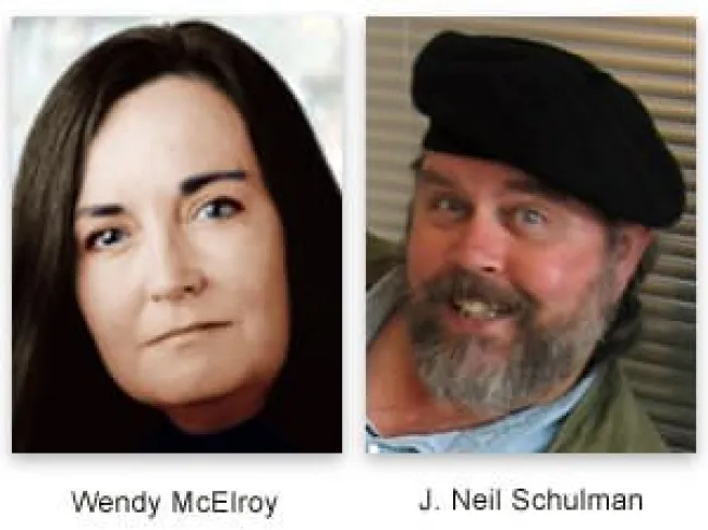Of course, I think McElroy has the better argument in the debate; in fact, I think I agree with everything she said. Her arguments are logical and devastating, her voice eloquent, sincere, and intelligent. Schulman tries to argue for restrictions on the use of ideas and information, but you can hear the unease the audience has with his proposal. I’ve criticized Schulman’s ideas previously;3 here I’ll note only a few things.