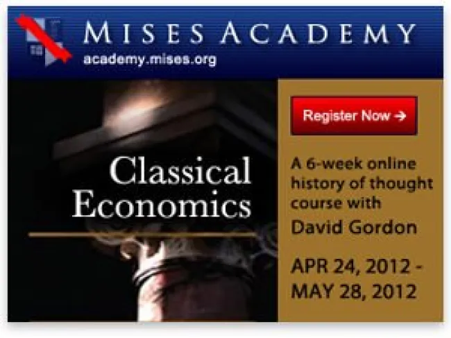 Copyright © 2012 by the Ludwig von Mises Institute. Permission to reprint in whole or in part is hereby granted, provided full credit is given.