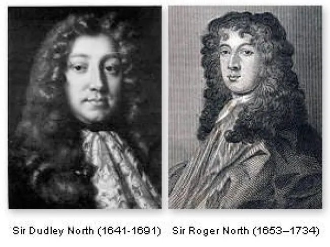 Dudley and Roger North were sons of the fourth Baron North. Showing little aptitude for schooling, Dudley (1641–1691) went to Turkey and became a prominent trader as well as a director of both the Levant Company, which had been granted a monopoly of English trade with the Middle East, and the African Company, which enjoyed a monopoly of trade with that continent. Dudley North returned to London from Turkey in 1681, just in time to aid King Charles and his elder brother, Francis, Lord Guilford (1637–1685), in the patriotic cause of trying to indict John Locke’s patron, Lord Shaftesbury, on the charge of treason. Francis, a distinguished jurist, had risen swiftly from solicitor general to attorney general, to Lord Chief Justice of the Common Pleas, and finally, in 1682 at the age of 45, to Lord Keeper of the Great Seal, the highest law office in England. Indictments for treason had to be handed down by grand juries appointed by sheriffs of London, and so Dudley North, in a famous and irregular election, ran for and was elected sheriff, after which he and his juries became scourges of the Whig party.