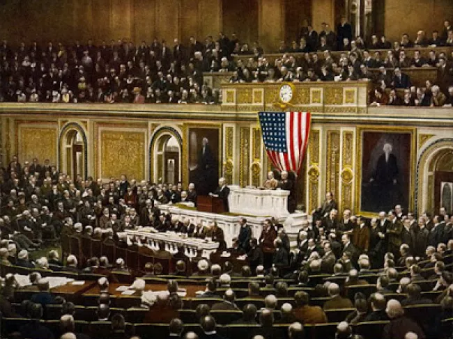 On April 2, 1917, Wilson addressed a joint session of Congress, calling for a declaration of war against the German Empire, in order “to make the world safe for democracy.”