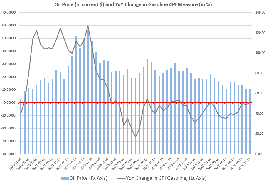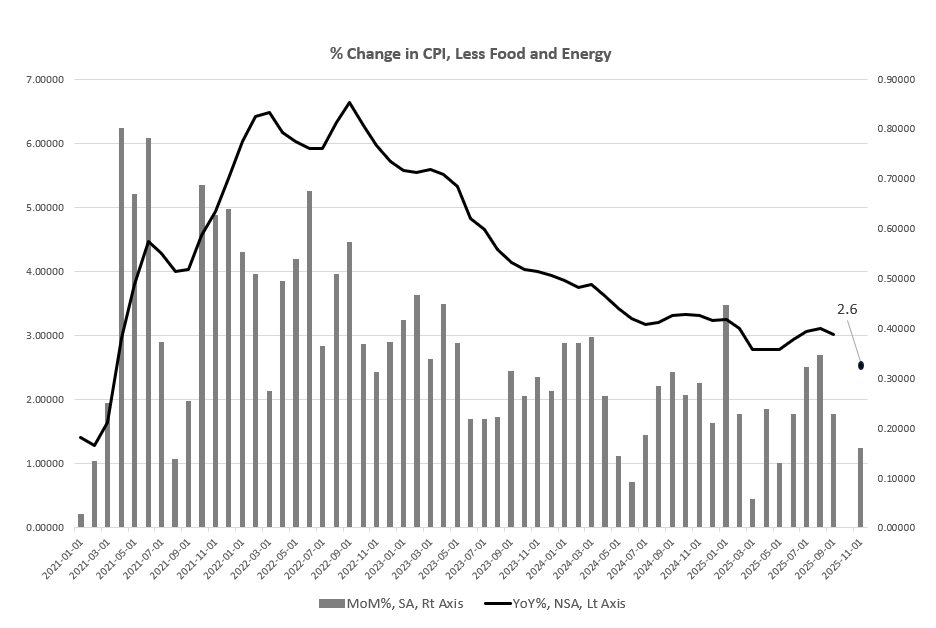 Removing volatile food and energy prices, the so-called core CPI showed similar changes. Year over year, the core CPI also slowed to 2.6 percent in November, falling from September’s YoY increase of 3.0 percent. Core CPI growth also slowed, growing by 0.16 percent from September to November, as compared to 0.23 percent growth from August to September.