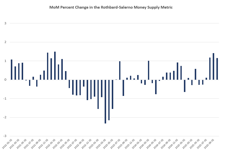 While the money supply largely flatlined through much of the mid-2025, growth has clearly accelerated since August of this year.