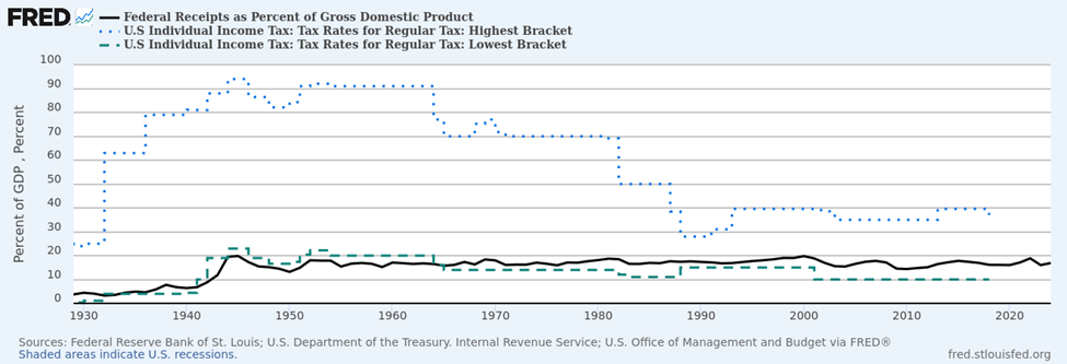 Figure 1—Federal income tax rates (percent) and federal receipts as percent of GDP