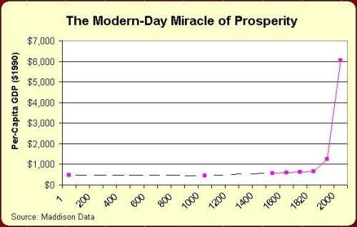 An unprecedented jump in growth, for instance, is what enabled the western world to escape poverty, resulting in the famous “hockey stick” of modern prosperity.